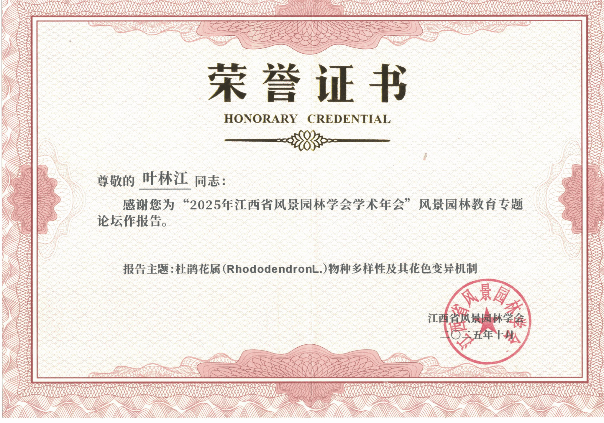 23日下午,我院园林系主任叶林江博士在风景园林教育专题论坛作中作了题为《杜鹃花属(Rhododendron L.)物种多样性及其花色变异机制》精彩学术报告,充分展示了我院在专业领域的最新研究成果,获得省内外同行专家的高度认可。