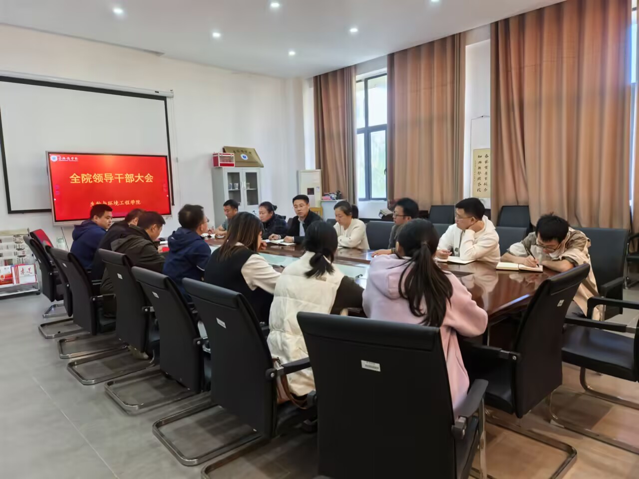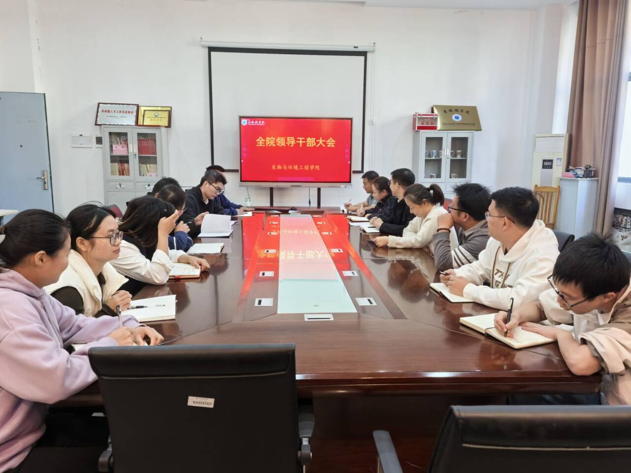 (本网讯:郑小俊)10月28日,生环学院召开学院领导干部会议,传达学习党的二十届四中全会精神,传达学习全省、全市领导干部会议精神,动员部署推动生环学院学习宣传贯彻工作。科级以上干部及各系负责人出席会议,学工处副处长主持会议并讲话。