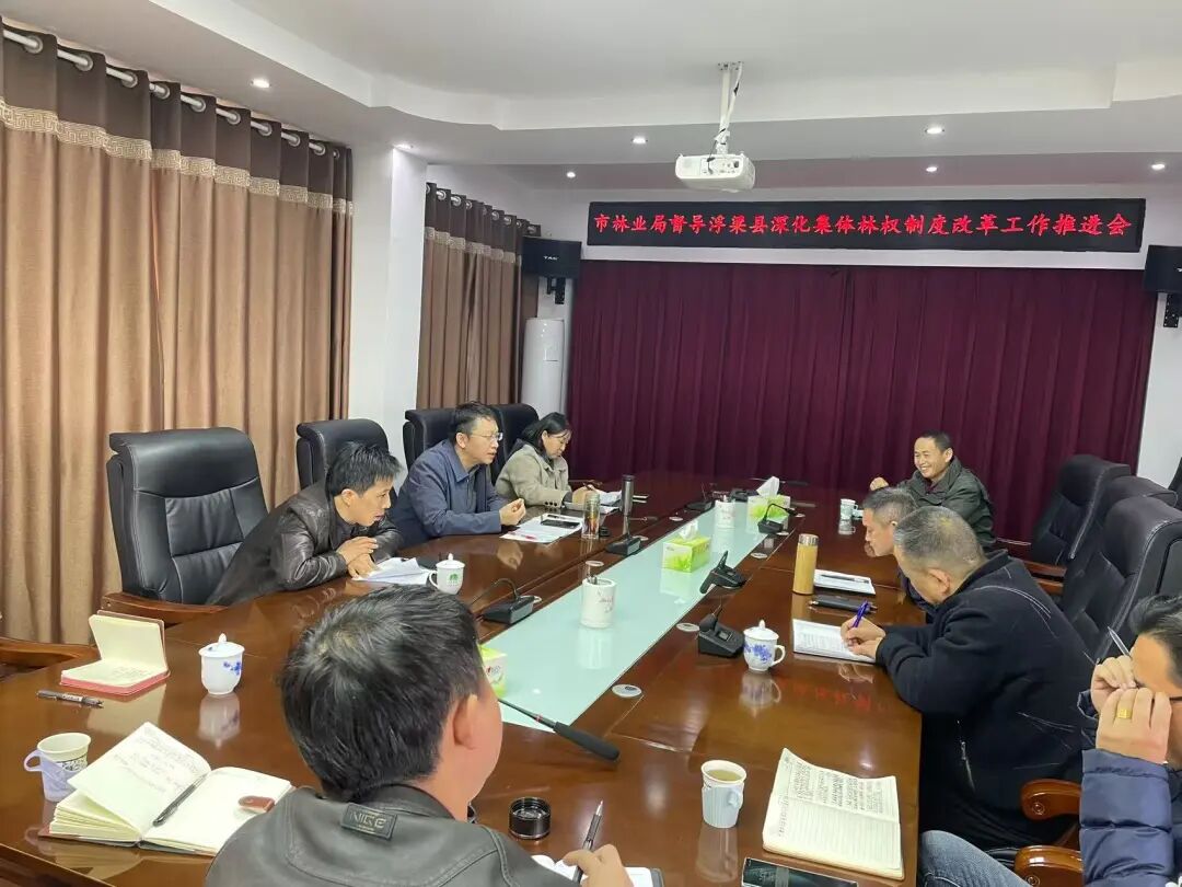 11月26日,景德镇市林业局党组书记、局长严峰带队赴浮梁县调度全省第三批深化集体林权制度改革先行区建设“季赛领跑”现场交流会筹备工作。市林业局党组成员、副局长王建武、浮梁县林业主管部门负责同志及相关业务人员陪同调研。